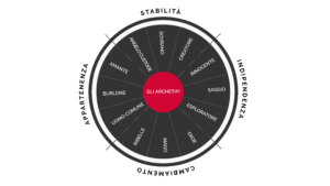 Il modello di Mark e Pearson raggruppa i 12 archetipi intorno a quattro grandi bisogni umani: stabilità, indipendenza, cambiamento e appartenenza. Nella sfera della stabilità troviamo il Sovrano, l’Angelo Custode e il Creatore legati a controllo, sicurezza e cura; nell’area dell’indipendenza vivono archetipi come l’Esploratore, l’Innocente e il Saggio, che parlano di libertà, autenticità e conoscenza. Il polo del cambiamento attiva l’Eroe, il Mago e il Ribelle – trasformazione, sfida, rottura delle regole – mentre nell’area dell’appartenenza si collocano l’Uomo Comune, il Burlone e l’Amante, che lavorano su vicinanza, gioco, sensualità e piacere condiviso.
